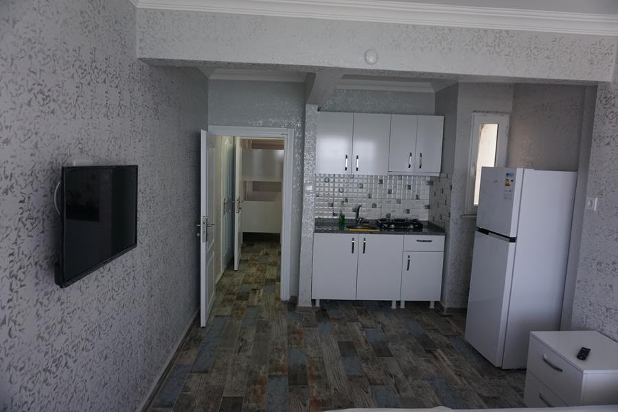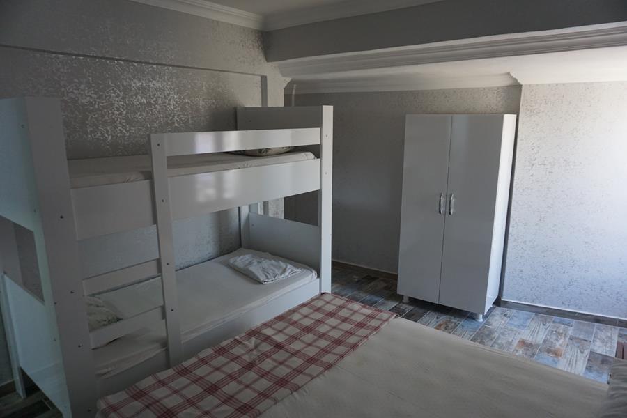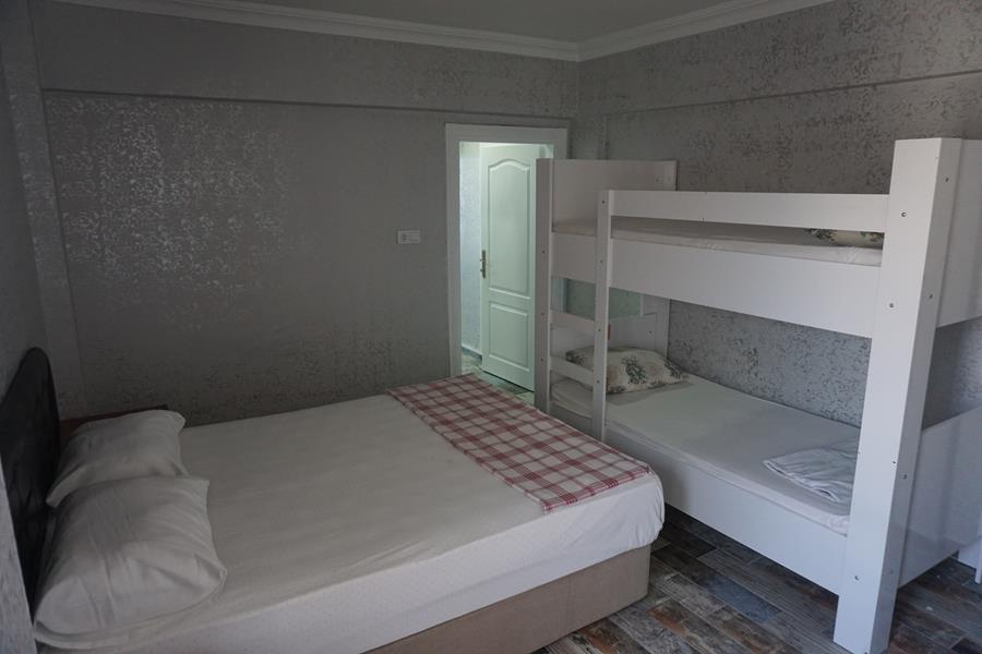 1+1 şeklindedir. 1 odasında 1 ranza ve 1 duble yatak 1 odasında 1 duble yatak vardır. Toplam 6 kişiliktir. Balkonu deniz manzaralıdır. Arka odası doğa manzaralıdır. Tüm odalarımızda ; ocak , tüp , buzdolabı , mutfak ve mutfak gereçleri , tv , banyo wc mevcuttur.